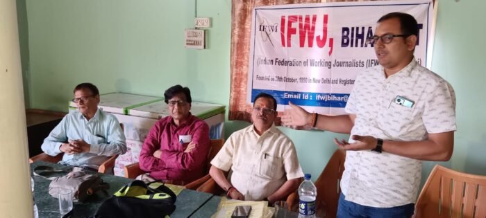प्रदेश महासचिव सुधीर मधुकर ने बैठक की अध्यक्षता करते हुए कहा कि वर्ष 1950 में स्थापित देश का सब से पुराना और पहला पत्रकार संगठन, इंडियन फेडरेशन ऑफ वर्किंग जर्नलिस्ट्स( आईएफडब्लूजे) हैं। उन्होंने बताया कि पटना पश्चिम में संगठन के विस्तार के लिए पटना जिला पश्चिम के दानापुर, फुलवारी शरीफ और पालीगंज अनुमंडल स्तर पर सघन रूप से सदस्यता अभियान चलाने के लिए प्रखंड स्तर पर दो-दो संयोजक मनोनित किया गया है।