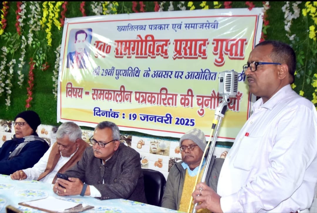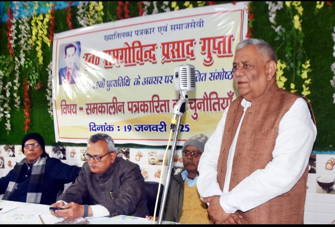 रविवार को ख्याति लब्ध पत्रकार स्वर्गीय रामगोविंद प्रसाद गुप्ता की 29वीं पुण्यतिथि के अवसर पर आयोजित समकालीन पत्रकारिता की चुनौतियां विषयक संगोष्ठी को बतौर मुख्य अतिथि संबोधित करते हुए कहा कि आज की मीडिया व्यापारिक ढ़ांचे में तब्दील है। बाजारवाद बढ़ा है। इस स्थिति में मध्यम और निचले स्तर के पत्रकारों की भूमिका महत्वपूर्ण हो गई है।