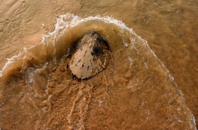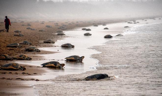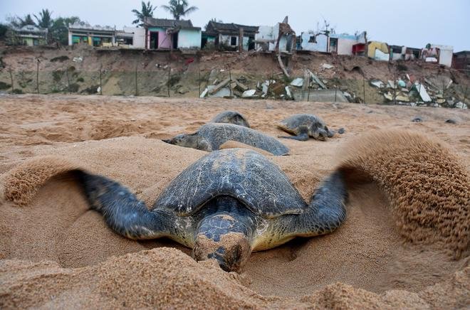अभयारण्य की खोज: ओलिव रिडले कछुए, प्रकृति के संरक्षण के लिए अंतर्राष्ट्रीय संघ के अनुसार एक कमजोर प्रजाति, अंडे देने के लिए ओडिशा में रुशिकुल्या नदी के मुहाने पर आते हैं।